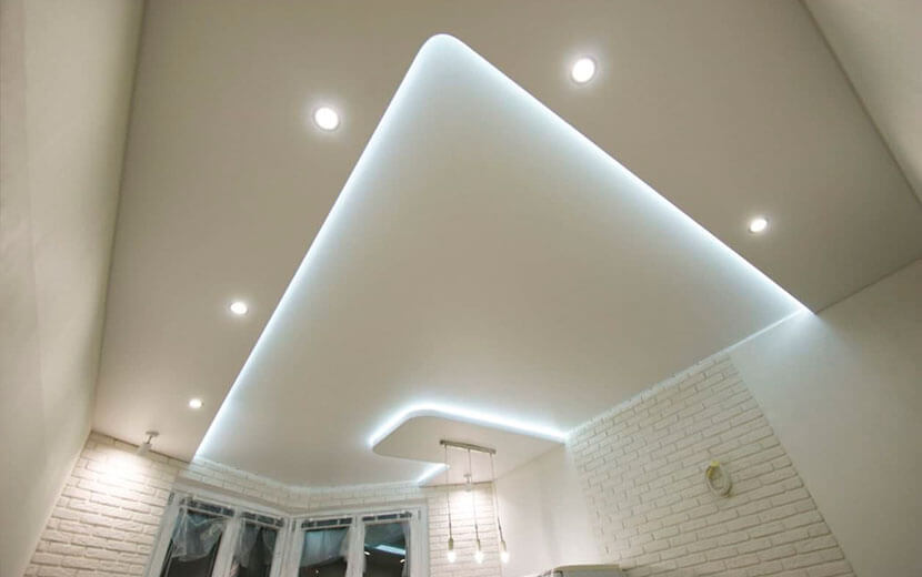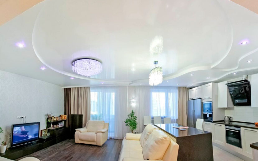 Стильные двухуровневые натяжные потолки в Бобруйске — простой и удобный способ эффектного зонирования пространства малогабаритной комнаты с небольшими расходами. Оригинальная конструкция поможет скрыть коммуникации и дефекты перекрытия, обеспечив комфортное освещение и яркое дополнение к интерьеру помещения.