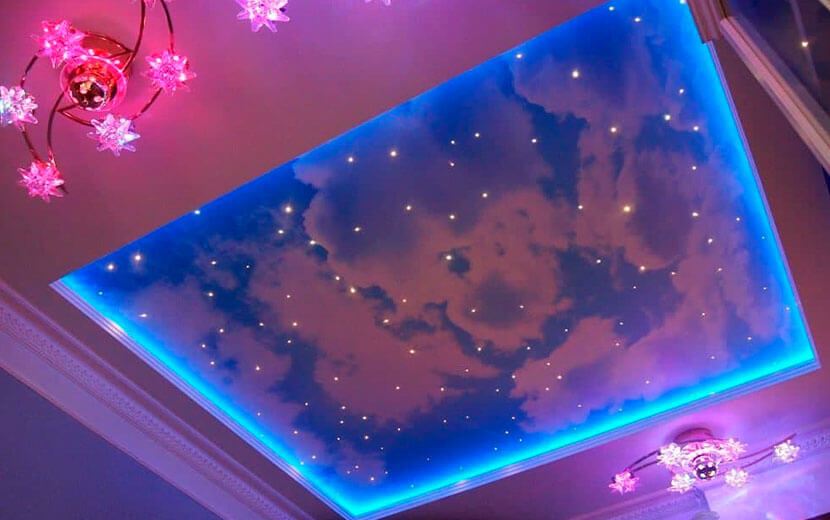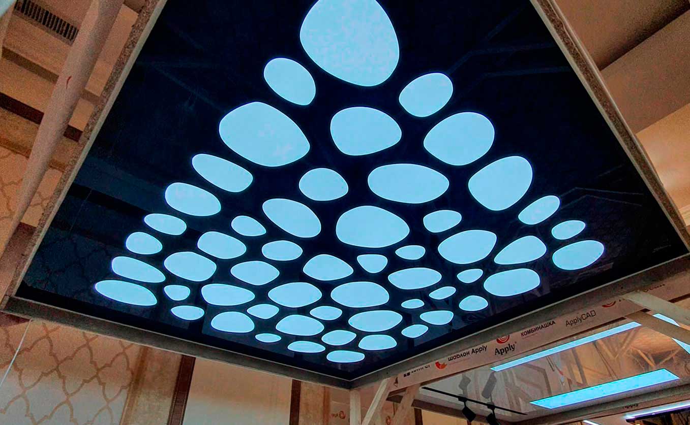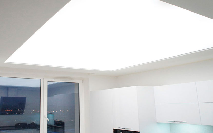 Заказать потолокОригинальный светопропускающий натяжной потолок обеспечит любому помещению не только красивый интерьер, но и наполнит его сказочной атмосферой. Основой такой композиции является особое полотно, формирующее эффект светящейся поверхности. Достигается это благодаря способности материала пропускать свет. При выключенном освещении такая конструкция ничем не отличается от стандартного натяжного потолка.