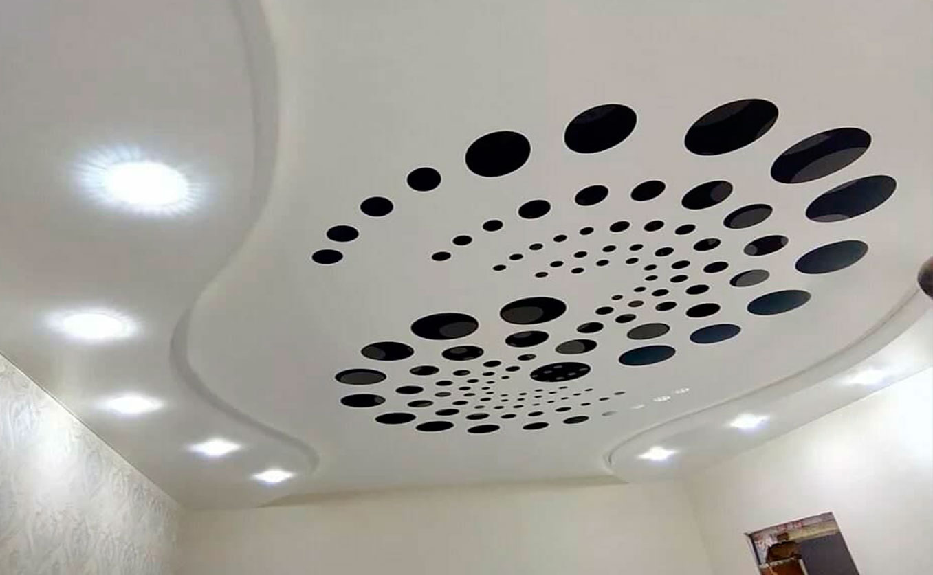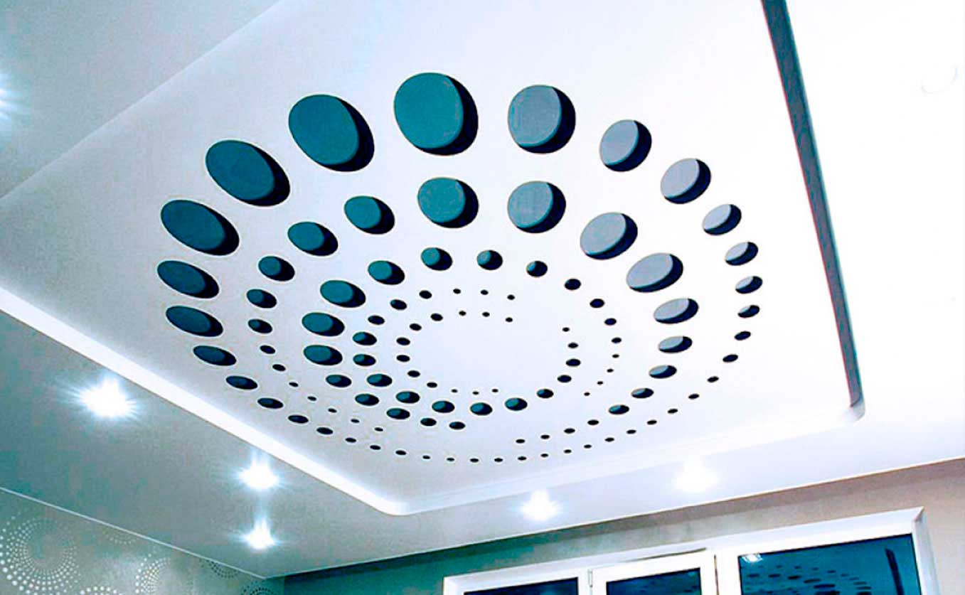 Заказать потолокДекоративные резы подойдут для любого помещения. Нагрузка от натяжения полотна равномерно распределяется на отверстия, резы не рвутся. Потолок выглядит объёмным и необычным.
